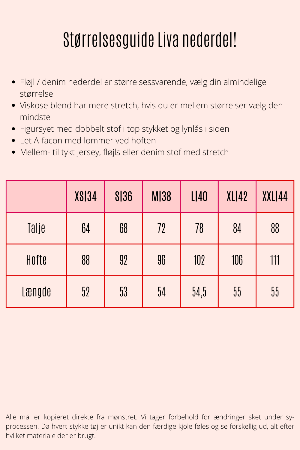 Liva nederdelen er vores bestseller basic nederdel. Den har en perfekt pasform, fine lommer foran, lynlås i siden og et A-line skørt.